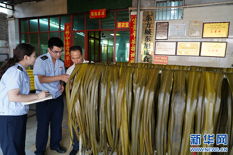 東方市稅務局干部走進當地粽子生產企業,了解粽子生產經營情況,講解最新優惠政策,解答涉稅疑難問題。新華網發(許妃 攝)