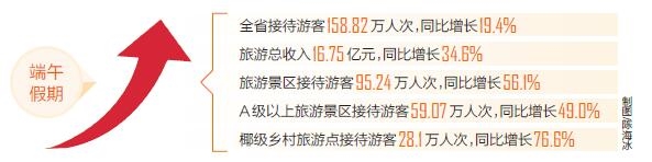 海南日報記者6月25日從省旅游和文化廣電體育廳獲悉,2023年端午假期,全省接待游客158.82萬人次,同比增長19.4%;旅游總收入16.75億元,同比增長34.6%。其中,旅游景區接待游客95.24萬人次,同比增長56.1%;A級以上旅游景區接待游客59.07萬人次,同比增長49%;椰級鄉村旅游點接待游客28.1萬人次,同比增長76.6%。
