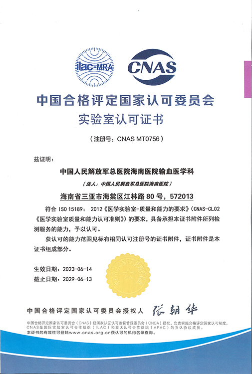 海南醫院輸血醫學科主任王海寶表示,此次獲得認可證書,檢測結果的準確性更有保障,實驗室具備了按照相應認可準則開展檢測服務技術能力,出具的檢驗報告可在國際上進行互認,這不僅是對海南醫院質量管理水平和能力的肯定,更是對海南醫院整體質量管理、標準化建設水平的一次有效檢驗?!拜斞t學科將不斷提升臨床用血保障水平,為軍民及國際友人提供更加優質、便捷的醫療服務,助力醫院高質量發展?!蓖鹾氄f。