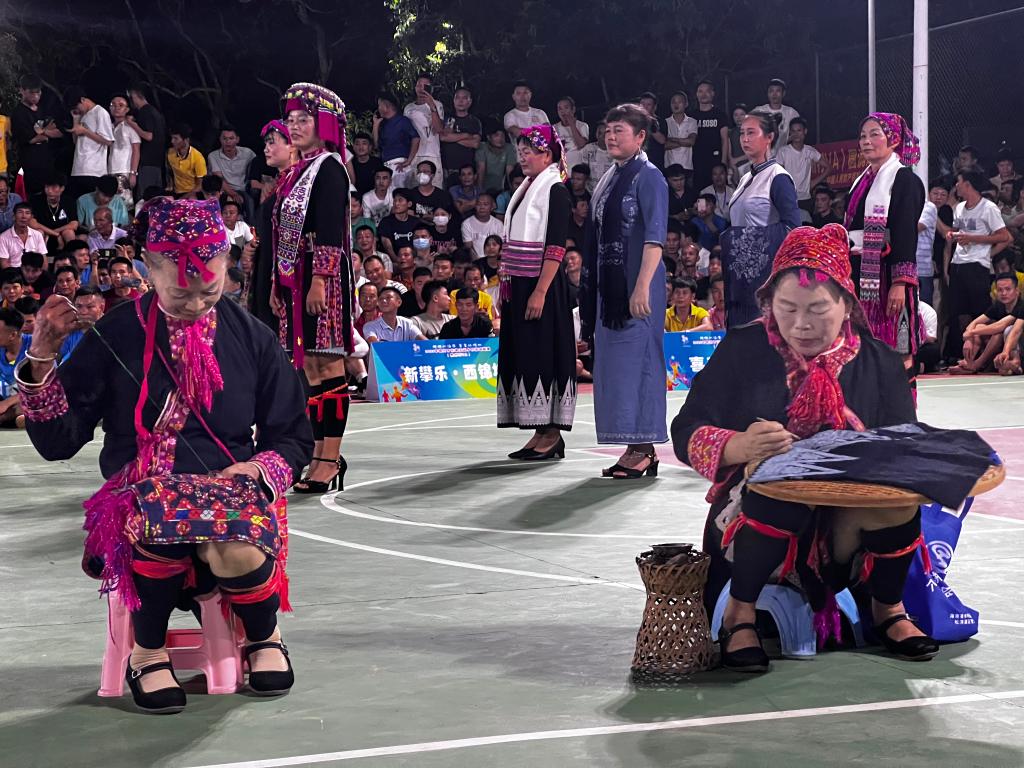 比賽間隙的民族技藝展示和黎苗服飾走秀。新華社記者 陳子薇 攝