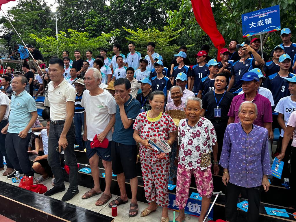 東道主中和鎮隊的拉拉隊聲勢浩大,觀眾擂鼓搖旗吶喊,為即將上場的運動員助威。許圣韓是中和鎮排球隊的一員,他說:“我們鄉下一直有打排球的傳統,大家在打球中感受樂趣,認識球友、交流球技,我有信心贏得今晚的比賽?!?/p>