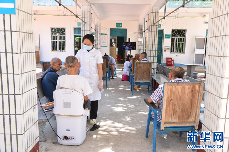 在廣青醫養的院子內,老人在享受各種療養服務。新華網發