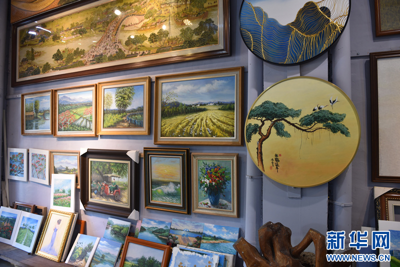 屯城鎮興業路是屯昌出名的油畫街,全街共25間畫室于街道左右一字排開,隨意走進一家,都能觀賞到各種風格不一的油畫作品,西式古典、中式田園、還有海南本地黎族苗族特色......這些作品均出自于當地56名“農民畫師”之手。