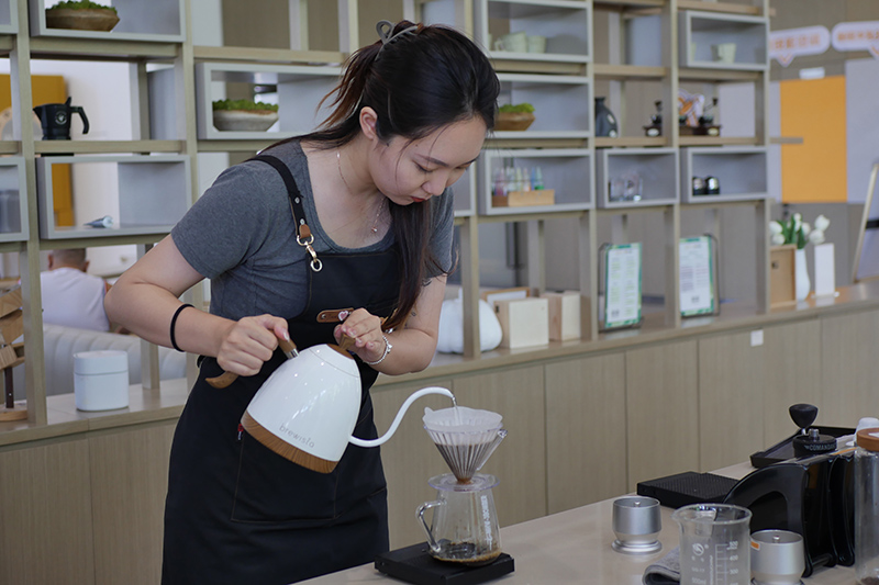 咖啡師現場為采風團成員沖泡咖啡。新華網發(徐淑敏 攝)