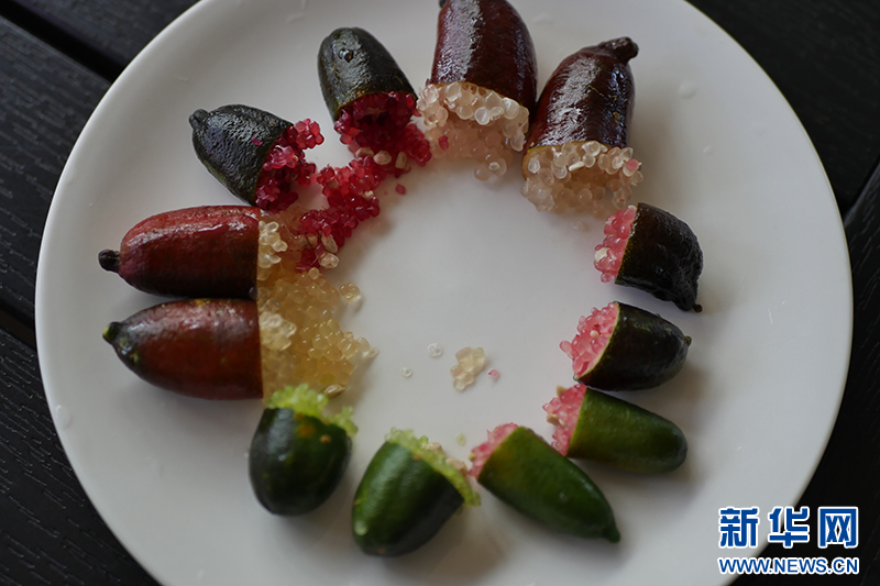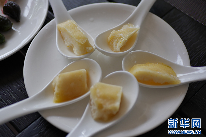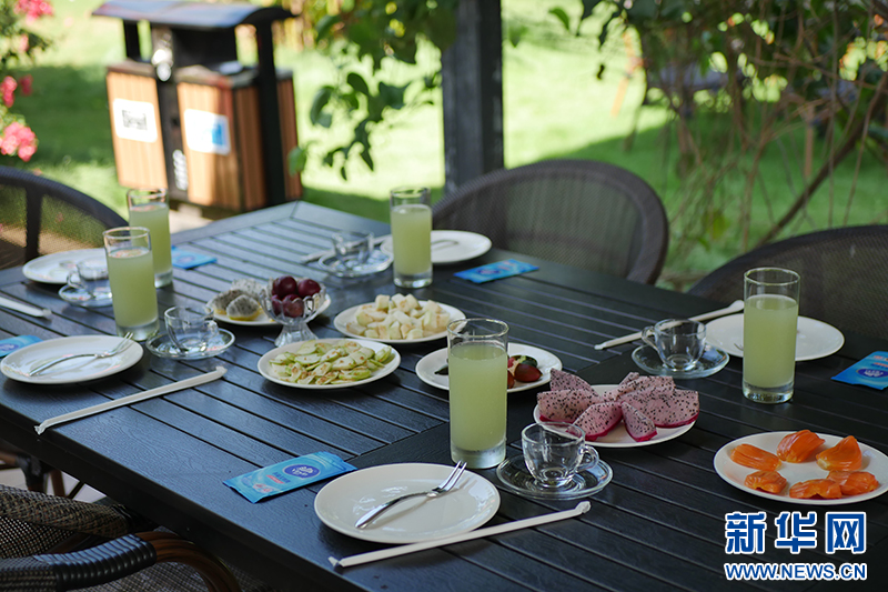 園區為采訪團準備的特色水果餐。新華網發(徐淑敏 攝)