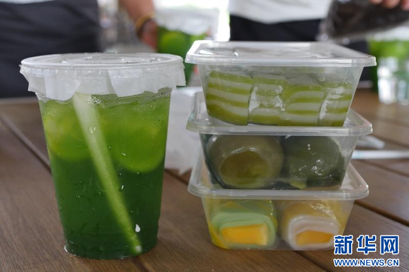 斑斕檸檬茶和斑斕糕點。新華網發(徐淑敏 攝)