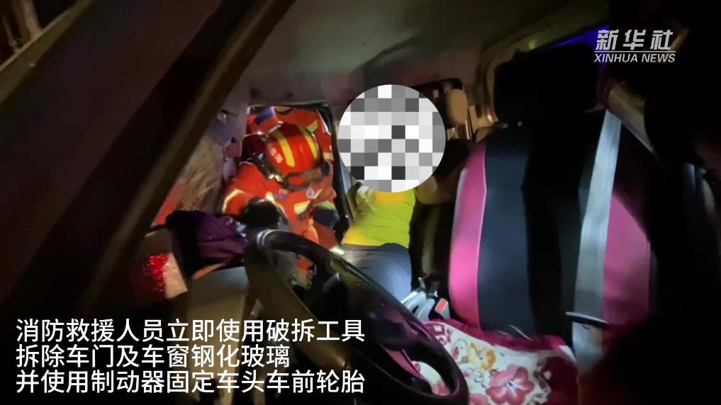 貨車側翻致5人被困 海南瓊海消防緊急救援