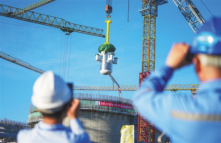8月10日,“玲龍一號”反應堆核心模塊吊裝現場。海南日報記者 李天平 攝