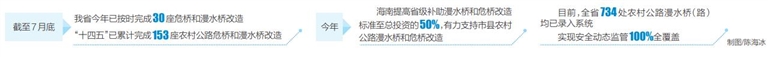 在資金保障方面,省交通運輸廳積極爭取部省補助資金支持農村公路漫水橋和危橋改造,持續加大對農村公路漫水橋和危橋改造的支持力度。2023年提高省級補助漫水橋和危橋改造標準至總投資的50%,有力支持市縣農村公路漫水橋和危橋改造。
