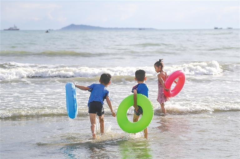 近日,小朋友們在三亞灣踏浪戲水。海南日報記者 王程龍 攝