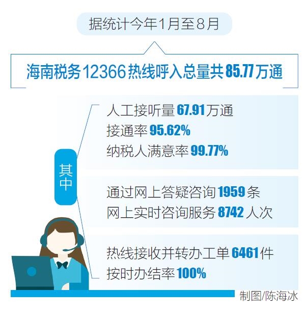原題:海南稅務12366熱線今年前八月呼入85.77萬通