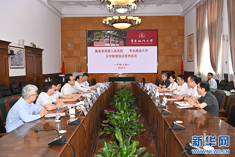 9月18日,海南省高級人民法院與華東政法大學共同簽署涉外法治領域合作框架協議,旨在統籌推進國內法治和涉外法治、推動法學理論研究與審判實踐相融合、共同培養新時代高素質涉外法治人才。