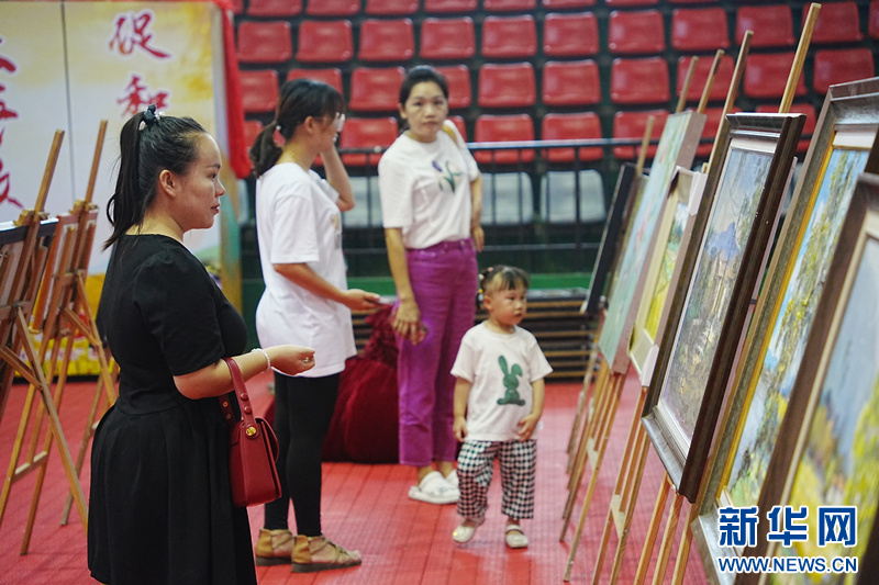 市民游客駐足欣賞油畫和攝影作品。新華網發
