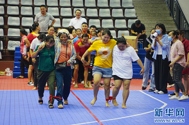現場活動中最引人矚目的要數趣味運動會中的拔河、套鴨子以及兩人三足跑比賽?,F場的掌聲、笑聲、吶喊聲匯聚成“豐收”的贊歌。