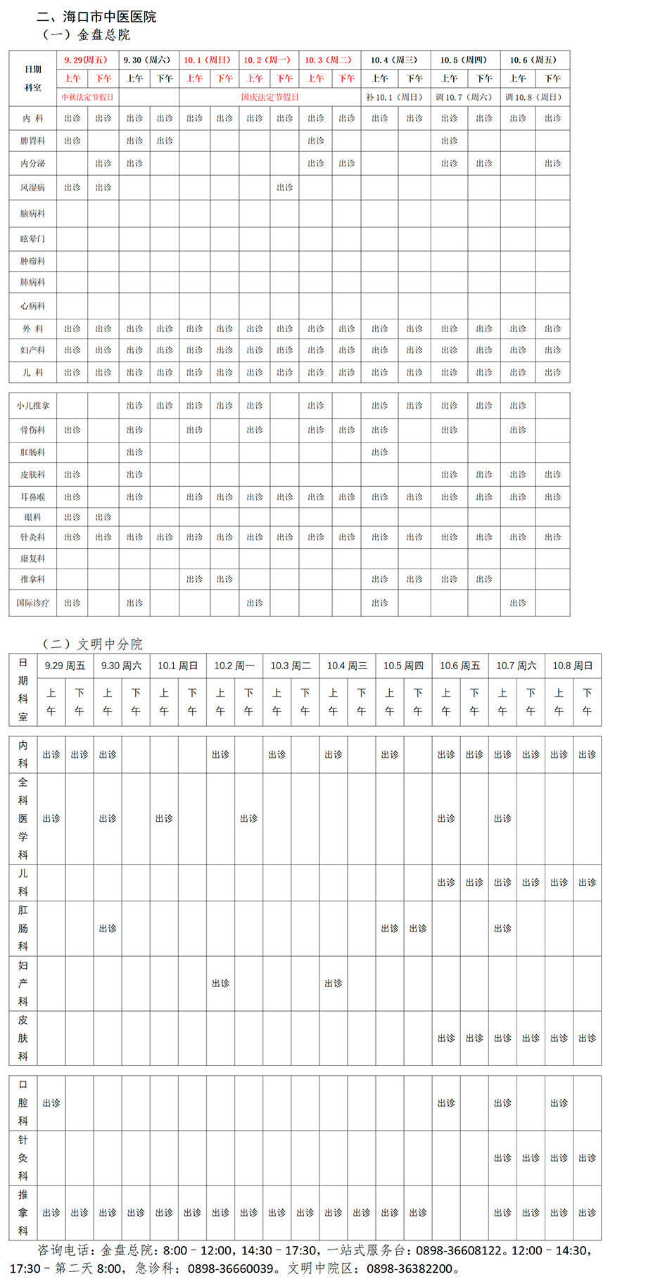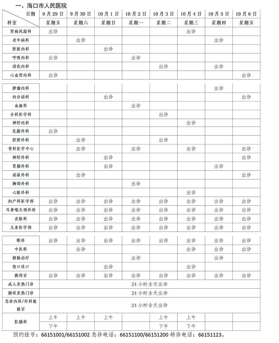 9月28日,據??谑行l健委消息,中秋國慶假期期間,??诟魇袑籴t院已擬定假期開診安排,具體出診專家以當日號源為主。請有需要的市民朋友關注各醫院微信公眾號、海易辦全省統一預約掛號平臺等,提前線上預約、錯峰就診。
