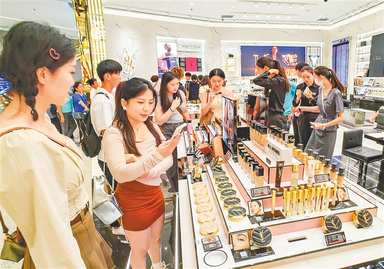 中秋國慶假期,在cdf??趪H免稅城,促消費活動吸引眾多消費者前來購物。該免稅城精心打造多元化的文旅消費新場景新業態,推出多個新活動、新玩法,備受廣大消費者青睞。海南日報記者 陳元才 攝