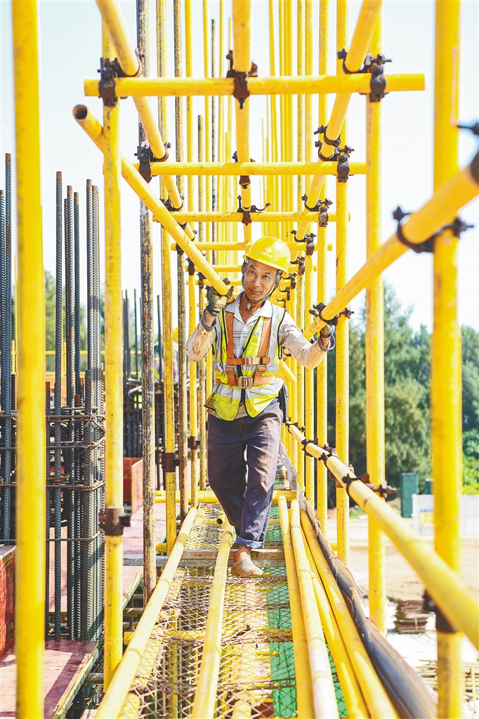 近日,??谑泻I暇C合執法碼頭及配套路網項目綜合執法中心項目現場,工人正在施工作業。目前,該項目已進入主體施工階段。