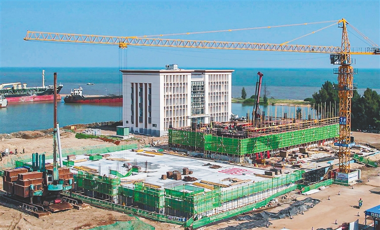 ??谑泻I暇C合執法碼頭及配套路網項目位于南渡江入??跂|岸、新東大橋北側、新埠島對岸,將建設成為集安全警備、執法辦公、船舶碼頭、后勤保障等功能于一體的海洋安全綜合保障基地。項目建成后,將為海南自貿港封關運作提供硬件基礎設施保障。海南日報記者 袁琛 攝
