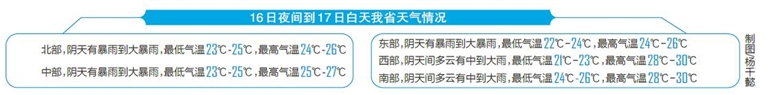 16日至17日,??陉幪煊斜┯?,局地大暴雨,且降雨時段主要集中在16日至17日上午。16日早上班高峰期、17日早上班高峰期的??诔蔽惠^高,如疊加強降雨或長時間降雨,在高潮位海水頂托下極易形成城市內澇,將對交通出行造成影響。