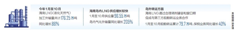 今年3月,海南LNG實現接卸和返輸LNG船“雙100”的目標;7月,年度外輸量突破100萬噸;8月,超過去年全年加工量總和;9月,創海南LNG船舶在港作業24天新紀錄。圍繞今年四季度目標任務,海南LNG正持續發力,強化落實保供任務,為海南自貿港建設輸送源源不斷的天然氣能源動力。