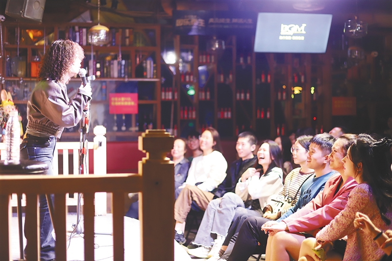 “與大劇場的演出不同,脫口秀這樣的小劇場演出,我們觀眾和臺上演員的距離更近,能更好地互動交流,氛圍感更好?!敝敖洺?创髣鲅莩龅娜螛沸?,在其閨蜜的帶領下,第一次到看了脫口秀的演出,她覺得小劇場的票價和看一場電影差不多,但是體驗比看電影好太多。