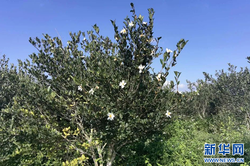 海南省臨高縣多文鎮和舍村油茶產業園內的油茶花盛開。新華網發
