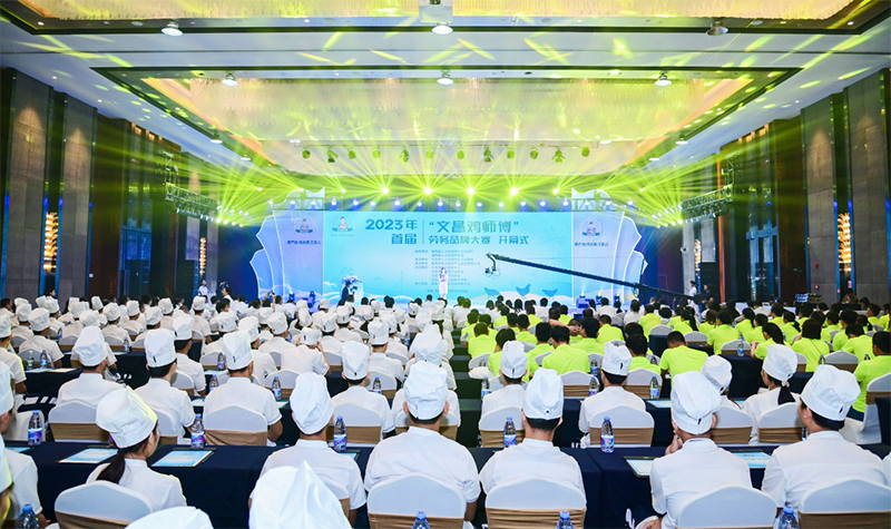 11月28日,2023年首屆“文昌雞師傅”勞務品牌大賽開幕式在海南文昌舉行。此次活動為期三天,共設置烹飪大賽、養殖大賽兩項比賽,參賽人數超400人,大賽以“展示非遺技藝·助力產業發展”為主題,旨在展示勞務品牌特色文化,擴大勞務品牌就業規模和助力產業振興,提升文昌市勞務品牌知名度,營造勞務品牌建設的濃厚氛圍和良好環境。
