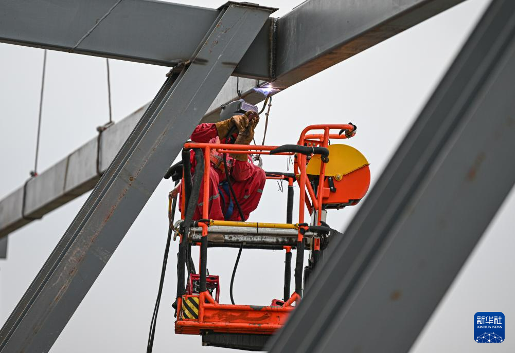 11月25日,工人在位于海南省儋州市的“儋耳追光”驛站工地施工。