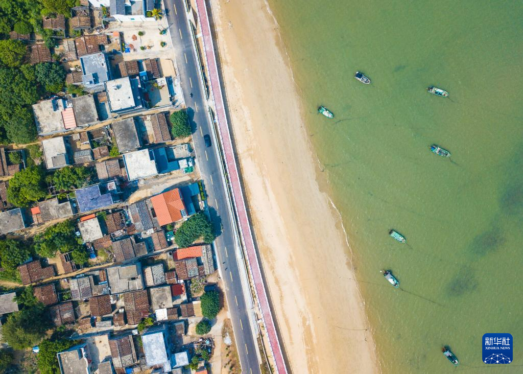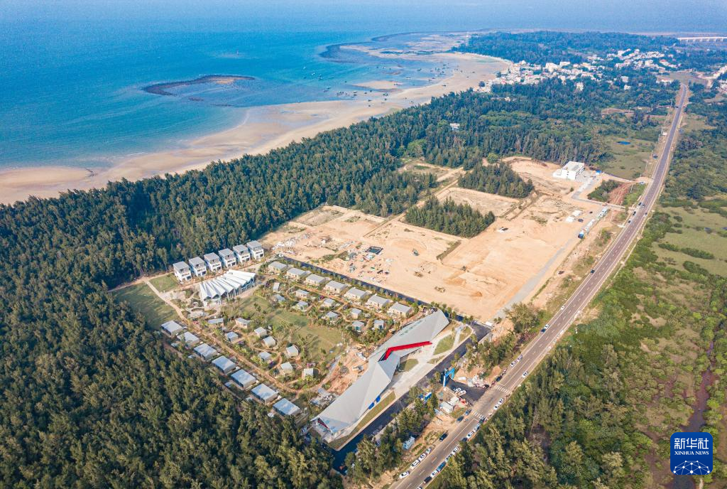 11月28日在海南省儋州市拍攝的建設中的“儋耳追光”驛站和海南環島旅游公路。