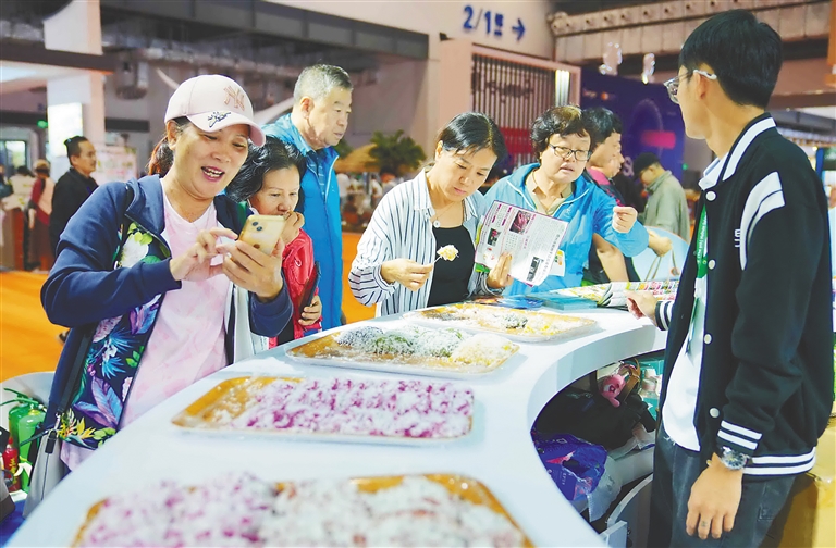 ③在2023年(第九屆)海南國際旅游美食博覽會上,游客品嘗海南特色美食。海南日報記者 張茂 攝