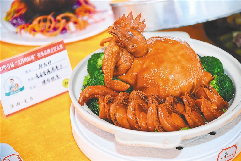 在大賽現場,一只只文昌雞經過師傅們的“妙手”,變成一道道特色美食,體驗者大快朵頤,不吝對海南四大名菜之首的文昌雞送上贊美。