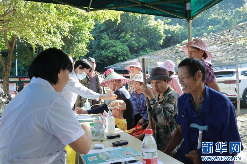 海南省第二人民醫院老專家和醫護志愿者現場為村民義診。新華網發(楊婕 攝)