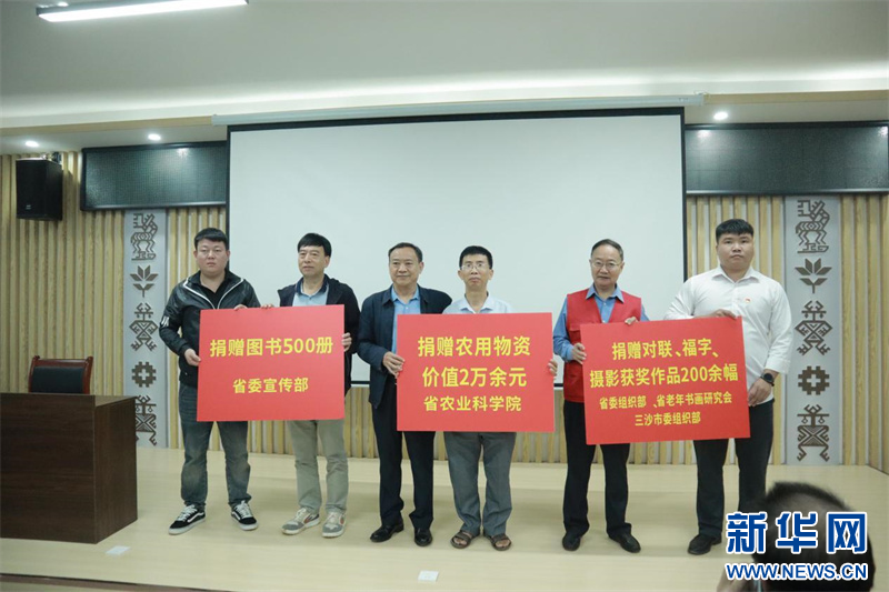 活動啟動儀式上,工作人員向村干部、村民代表捐贈書籍對聯、醫療物資、慰問品、助殘輔具、農用物資等。海南省委宣傳部的老同志為干部群眾作鄉村振興專題宣講。