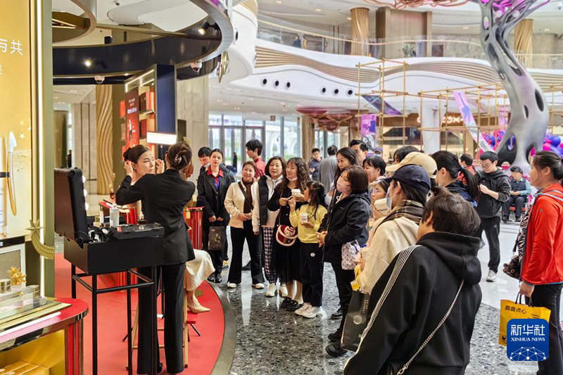 2023年12月24日,??趪H免稅城一家門店在進行產品展示活動。新華社記者 吳茂輝 攝