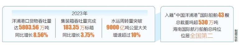 2023年,洋浦持續推動“中國洋浦港”船籍港、內外貿同船保稅油加注等海南自貿港政策紅利放大。截至目前,入籍“中國洋浦港”國際船舶43艘,總載重噸超530萬噸,助力海南國際航行船舶總噸位位居全國第二。去年,洋浦共開通5條航線,內外貿航線達45條,基本覆蓋國內沿海城市和東南亞地區主要港口,其中3條洲際航線通達太平洋、印度洋和大西洋,初步形成了“兼備內外貿、通達近遠洋”的航線格局。