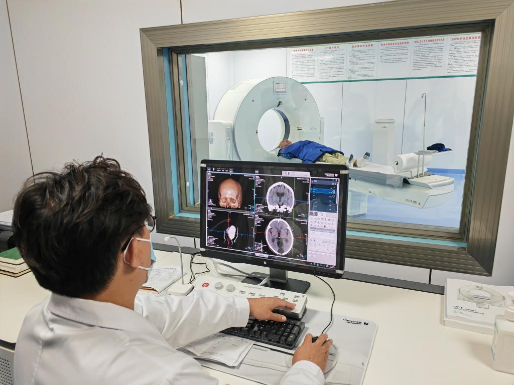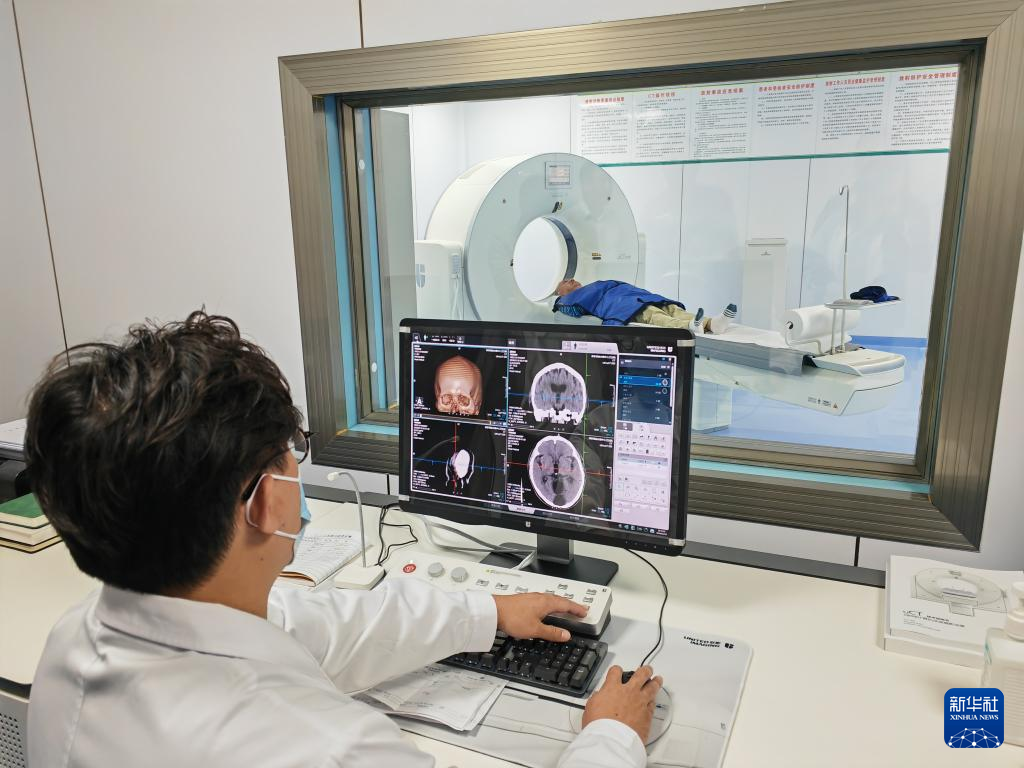 1月10日,保亭黎族苗族自治縣響水鎮中心衛生院的CT室內,醫生正為患者檢查頭部。新華社記者 夏天 攝