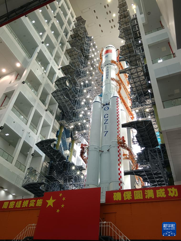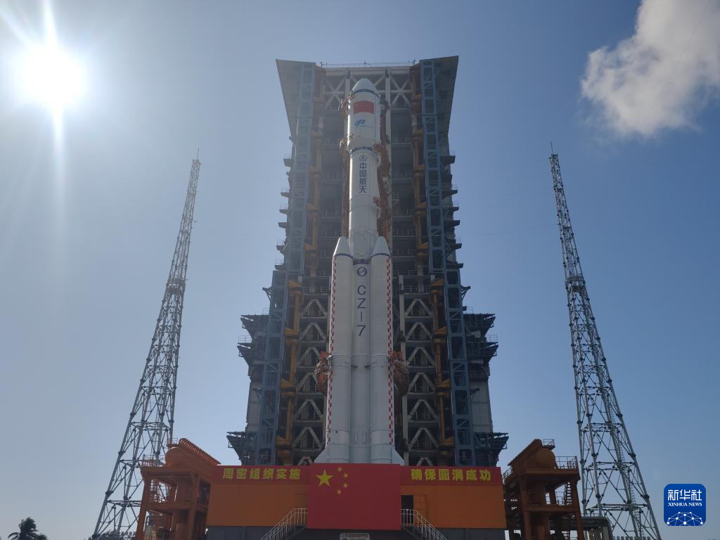 新華社海南文昌1月15日電(李國利、鄧孟)記者從中國載人航天工程辦公室了解到,1月15日,天舟七號貨運飛船與長征七號遙八運載火箭組合體垂直轉運至發射區。