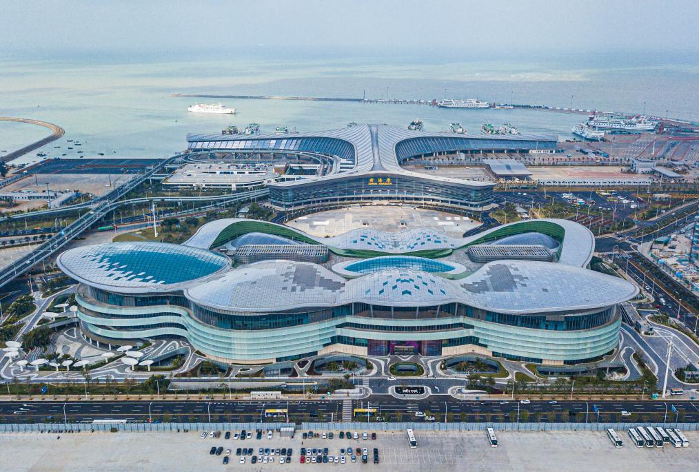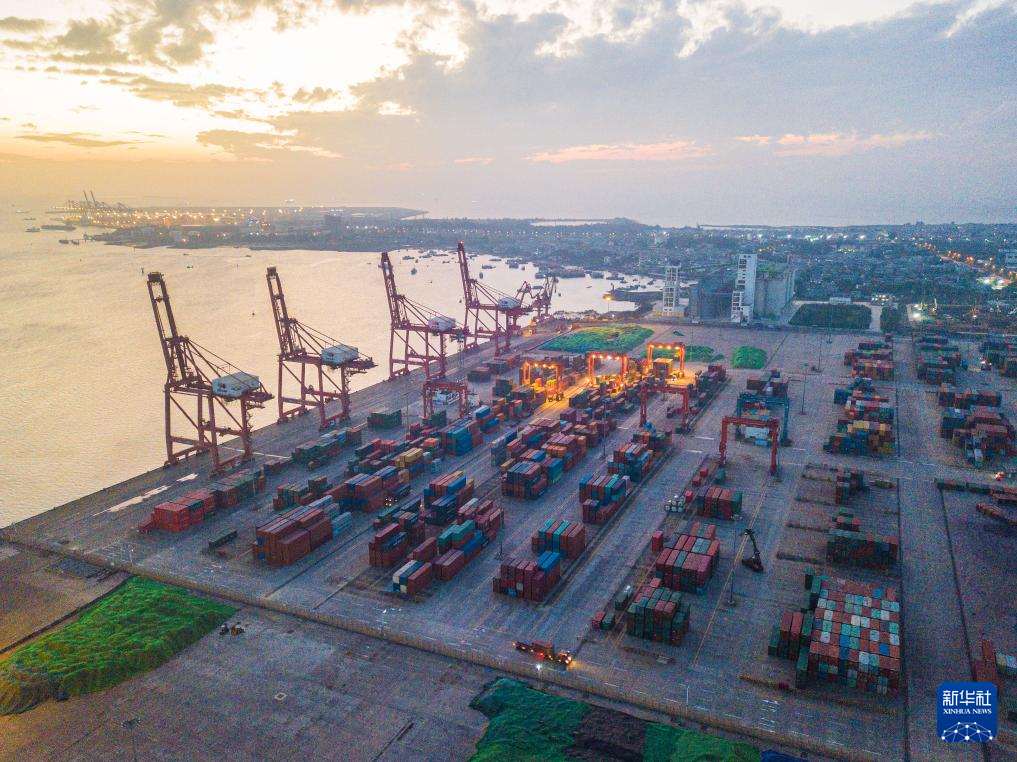 1月16日在海南省??谑信臄z的??诟奂b箱碼頭(無人機照片)。新華社記者 蒲曉旭 攝
