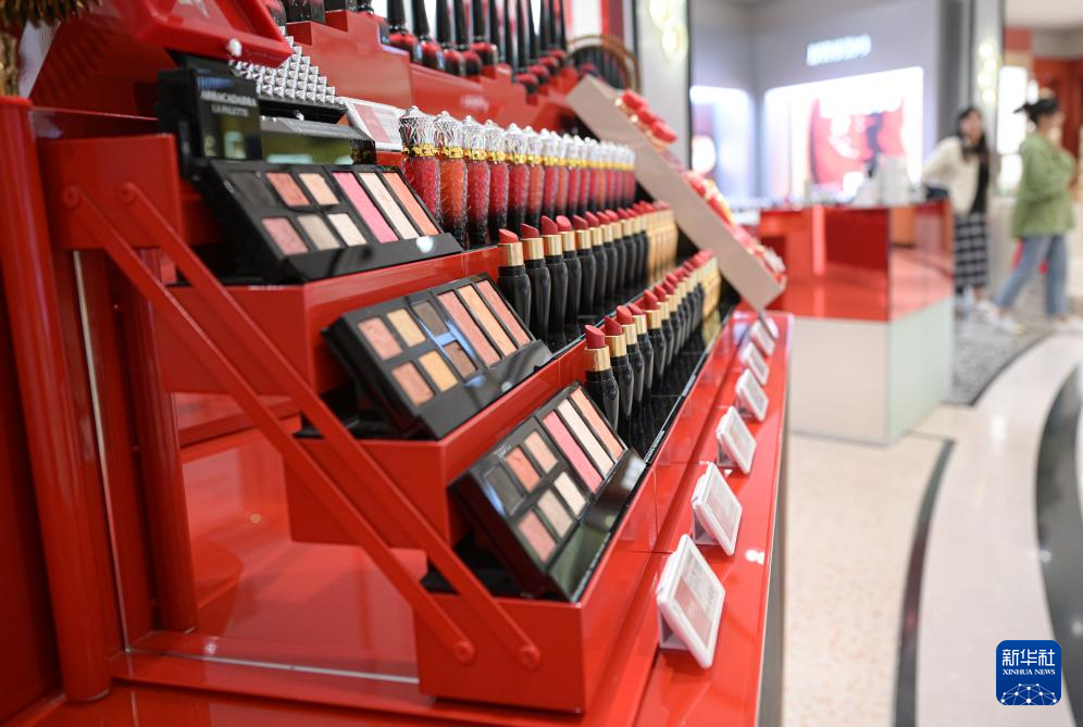 消費者在中免集團??谌赵聫V場免稅店選購商品(1月4日攝)。新華社記者 蒲曉旭 攝