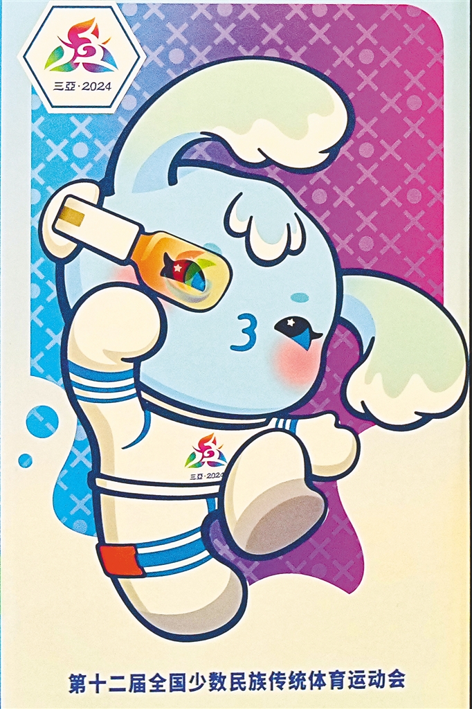 據介紹,本屆運動會會徽和吉祥物由清華大學美術學院設計團隊設計。會徽由三角梅、鹿回頭造型以及數字“12”構成,三角梅是海南的省花,代表熱情、堅韌不拔、頑強奮進,鹿回頭是三亞市的文化標志,坡鹿展現了體育賽事的運動之美。吉祥物是名為“吉貝”的海精靈,名字取自《尚書·禹貢》和蘇東坡的詩詞,在歷史上專指“黎錦”這一中華優秀傳統文化的典型代表,黎錦也是世界級非物質文化遺產,同時吉貝也有“吉祥寶貝”的意思。海精靈身著宇航服,寓意星辰大海,AI智能眼鏡中映射出海南自貿港的標志,展現了邁向中國式現代化的精氣神。