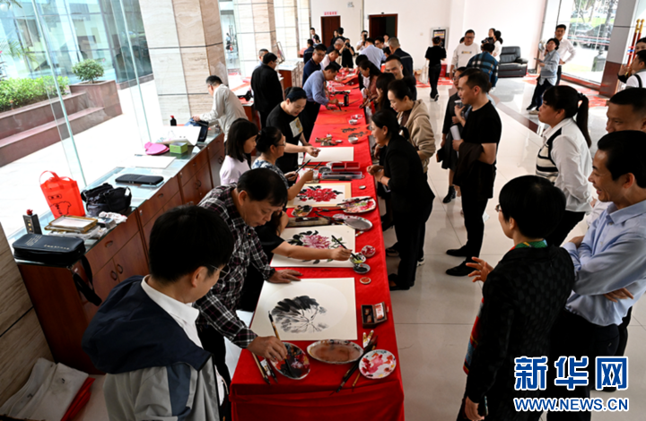 送書畫現場。新華網發