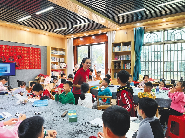 “小朋友們,你們知道過年有哪些習俗嗎?”2月5日下午,在瓊海市龍江鎮藍山村的藍山書屋里,大學生志愿者王冰正在給小朋友上一堂有趣的春節習俗課?!俺阅暌癸垺薄按┬乱隆薄胺疟夼凇薄淌依?,姐弟倆舉手搶答。