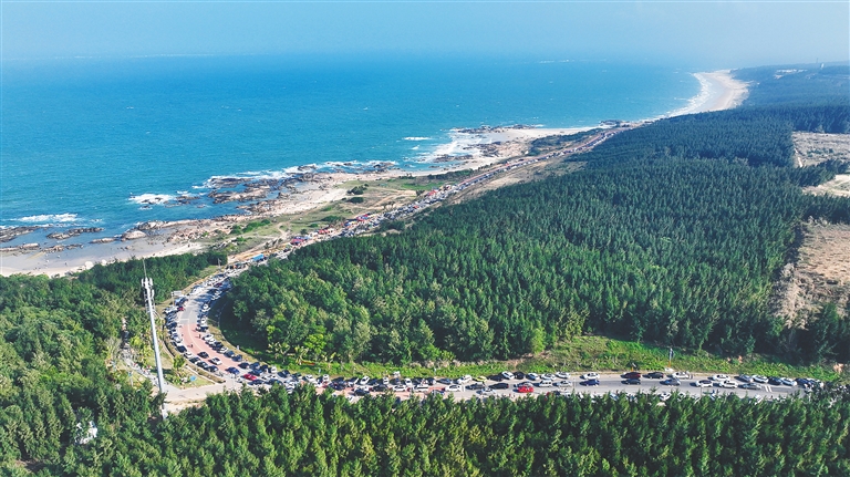 春節假期,游客在海南環島旅游公路文昌段游玩。趙文淦 攝