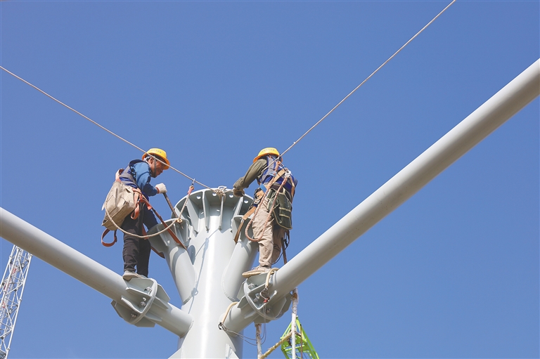 為了確保安全和質量,董延光輪番在作業面之間穿梭,檢查高空作業、臨邊作業的防護措施等,對沒有正確記掛安全帶的工人做出提醒。