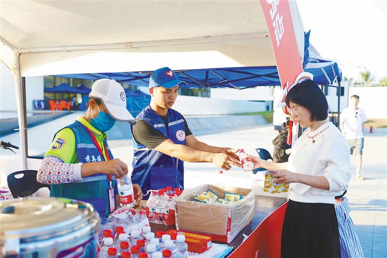 ③ 2月17日,在??谛潞8?,志愿者免費為旅客發放食物。海南日報記者 韋茂金 攝