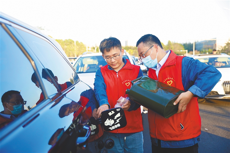 ② 2月17日,在??谛潞8?,中國石油工作人員為旅客應急加油。海南日報記者 韋茂金 攝