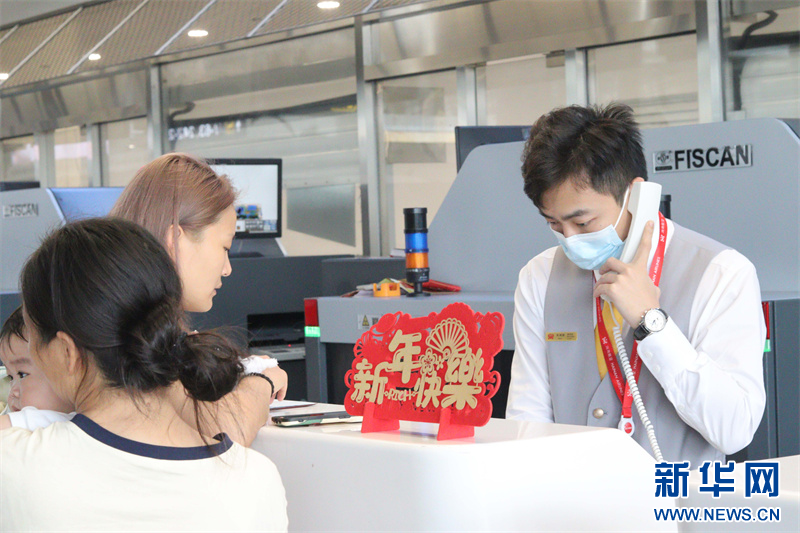 海南航空地服人員為旅客辦理值機手續。新華網發