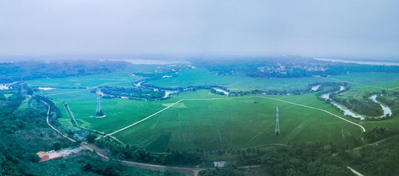 2月26日在??谑协偵絽^拍攝的三十六曲溪及周邊的早稻田(無人機照片)。