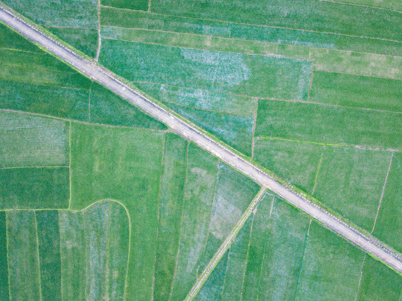 2月26日在??谑协偵絽^拍攝的三十六曲溪周邊的早稻田(無人機照片)。