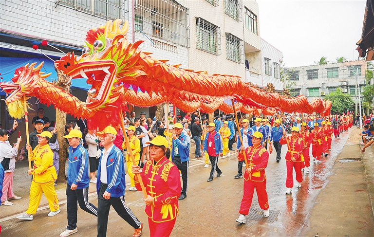 ??谫蛉宋幕澤涎荨把b軍”巡游。海南日報記者 封爍 特約記者 蕭海山 攝